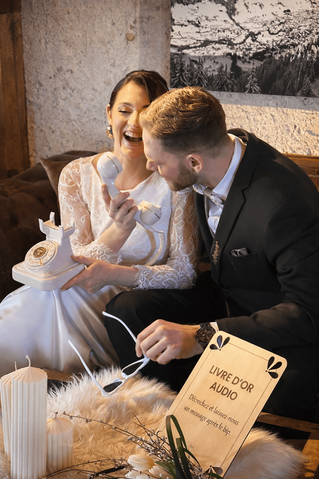 Livre d’or audio vintage : vos invités décrochent le téléphone et laissent un message après le bip. Rires, mots doux et souvenirs précieux à réécouter pour toujours. Une alternative originale au livre d’or classique.