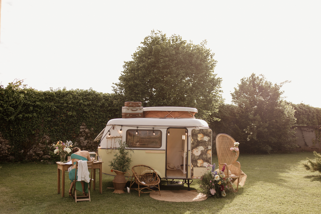 Equipée d'un photobooth haute qualité, prenez la pose depuis l'intérieur de la caravane !